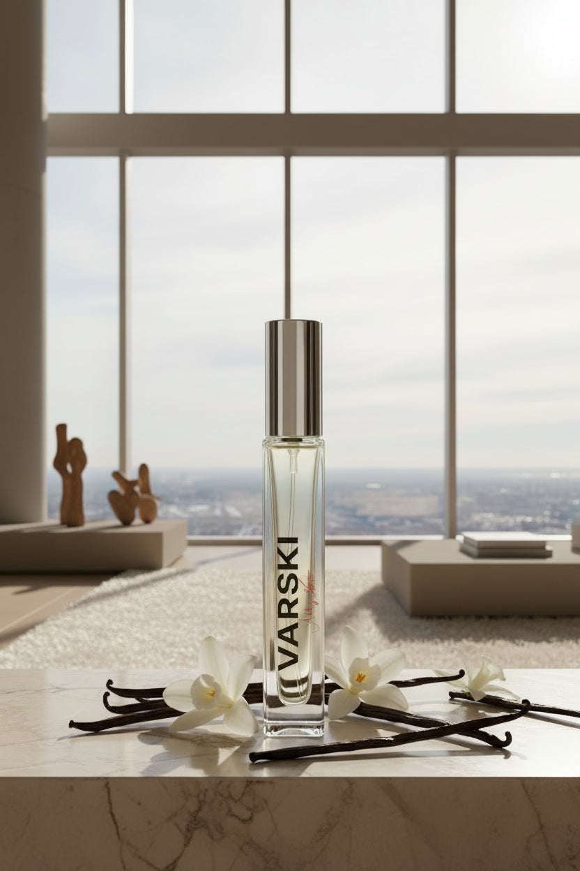 Wearing Varski, feels like wrapping yourself in comfort and elegance. The soft opening of coconut and almond milk creates an approachable warmth that draws people closer, while the rich vanilla heart makes you feel grounded and confident. As the scent settles, the creamy base of white musk and amber gives you a sophisticated, lasting presence-the kind that lingers in a room and leaves a memorable impression. It's a fragrance that makes you feel both effortlessly put-together and genuinely yourself, whether you're heading out for the day or settling in for the evening.